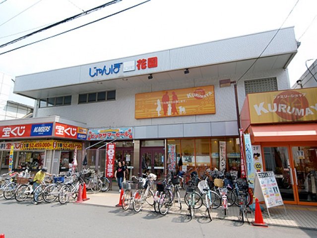 コンビニ 361m / スーパー 562m / ドラッグストア 734m / 銀行 140m / ジャンボスクエア花園 692m